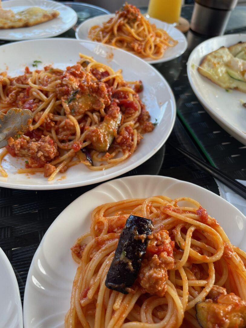 選べる日替わりランチで、パスタとピザを1つずつ注文。